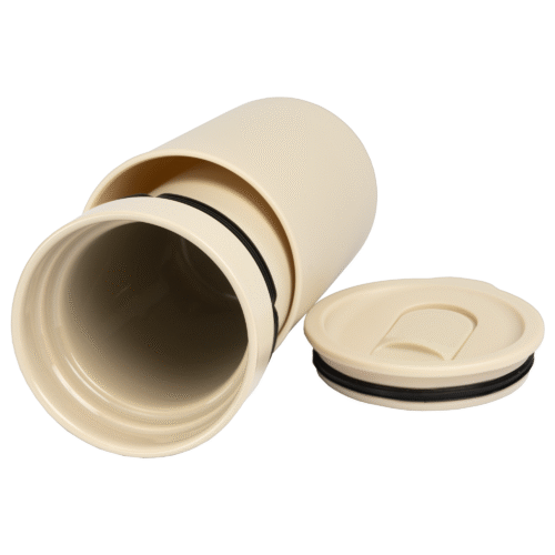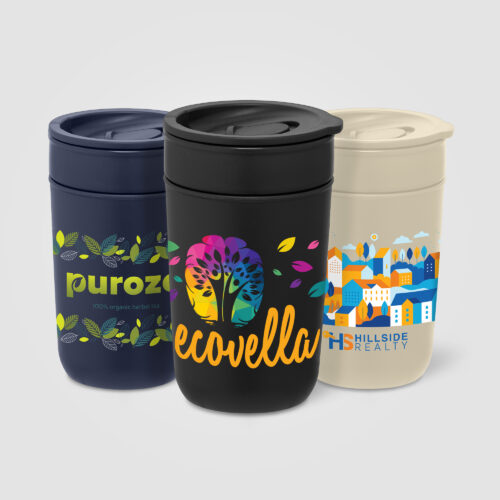 Our new Danube 12 oz. tumbler is an exclusive! This stylish tumbler combines a ceramic inner with recycled plastic exterior and lid with easy thumb slide-top. Comes packaged in individual kraft gift box with recycled polypropylene polybag. Customize with your full-color logo using our ColorJet wraparound imprint.